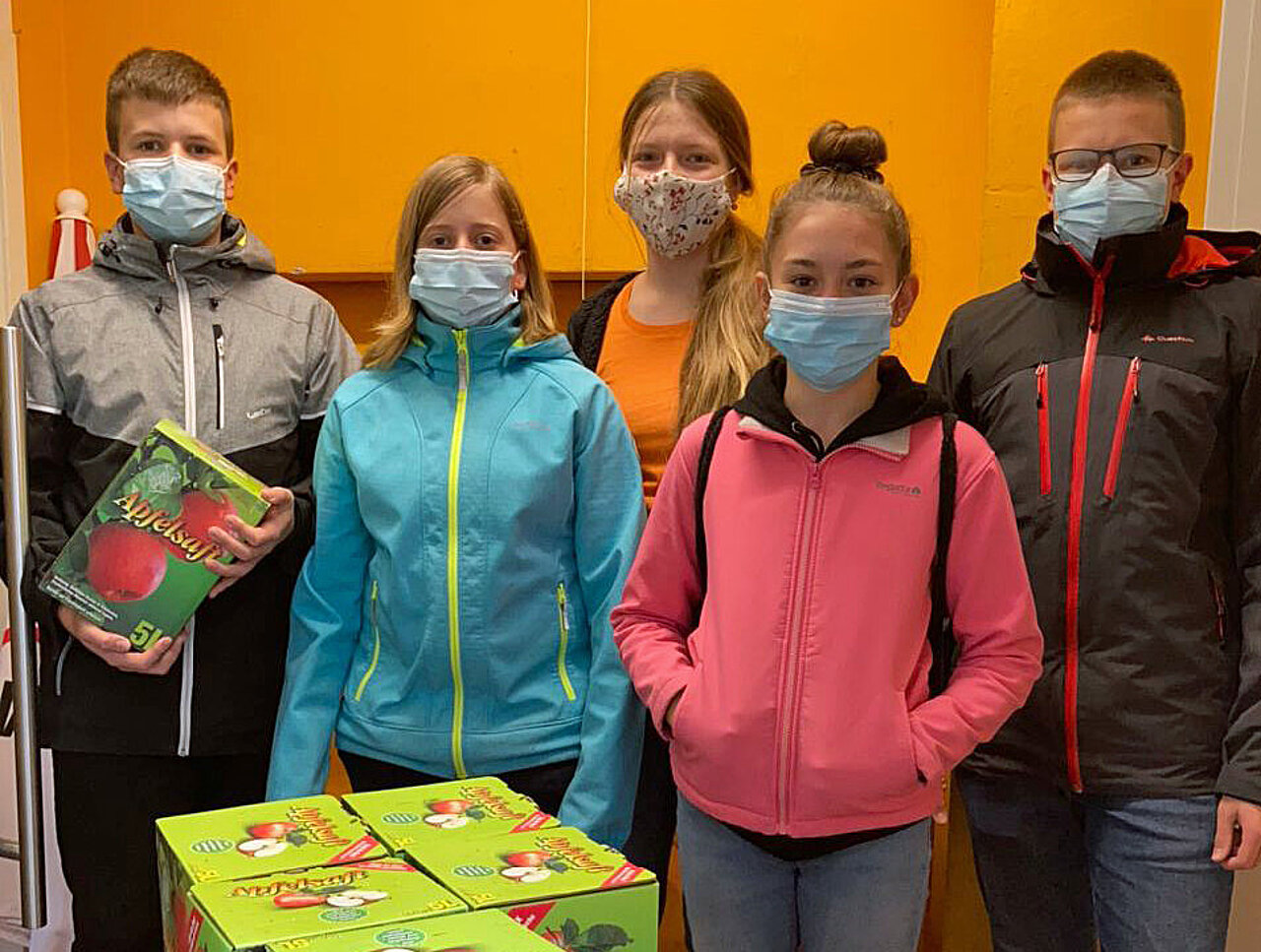 Einerseits einen Beitrag zum Erhalt einer alten Streuobstwiese und dem Verwerten der dort gewachsenen Äpfel zu leisten. In gut drei Stunden wurden circa 1300 Kilogramm Äpfel aufgesammelt und am nächsten Tag zu 900 Litern naturtrüben Saft gemostet. Aber was tun mit soviel Saft? Und hier kommt ein weiterer Aspekt hinzu, denn für die Kolpingjugend stand von Anfang an fest, den größten Teil des Saftes zu spenden. Und so bekamen der Tafelladen 90 5l-Kartons und das SOS-Kinderdorf 62 Karton frei Haus geliefert. Die glücklichen Gesichter und die Dankbarkeit der Beschenkten waren der Lohn für verantwortungsvolles Handeln und dem Einsatz für ein solidarisches Miteinander.
