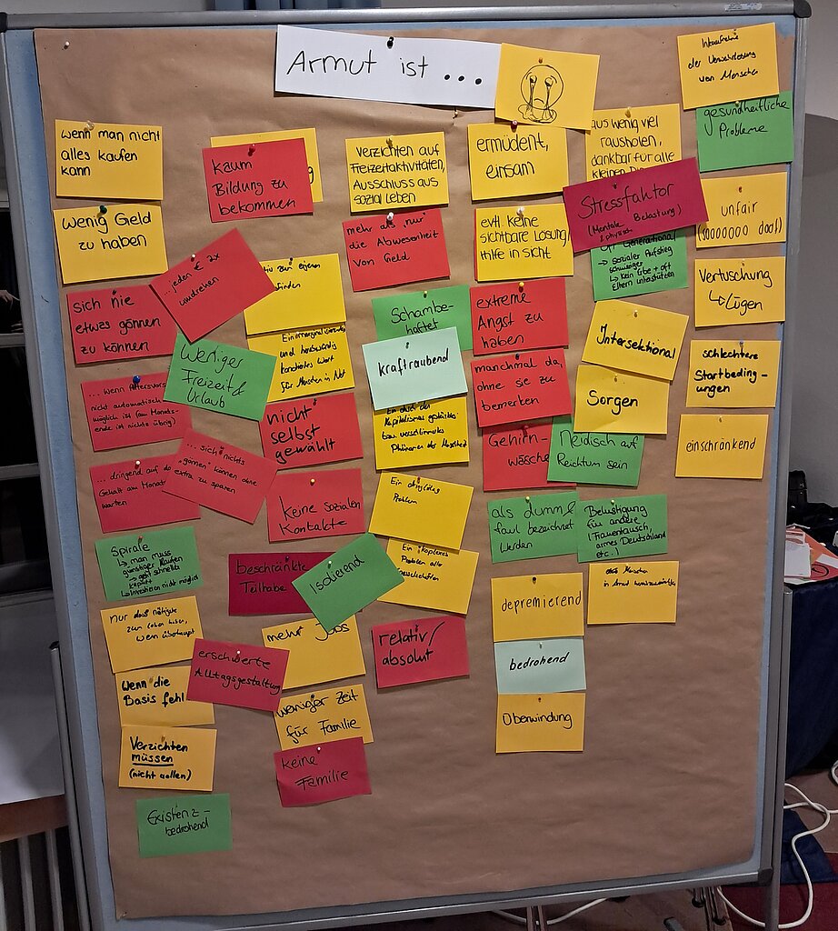 Der Samstag begann für uns mit einer Berichte-Runde. Dazu reiste Holger Heimpel vom Rechtsträger an und informierte uns über aktuelle Entwicklungen. Nach einer ausgiebigen Mittagspause folgte der Studienteil zum Thema „Armutssensibilität in der Jugendarbeit“. Gemeinsam beschäftigten wir uns mit den Auswirkungen von Armut auf Jugendliche und mit möglichen Hürden der Teilhabe in der Jugendarbeit. Durch interaktive Methoden wie Quizfragen, Fallbeispiele und Reflexionsübungen sensibilisierten wir uns für unbewusste Ausschlüsse und entwickelten praktische Ideen, wie wir Gruppenangebote armutssensibel und inklusiv gestalten können.