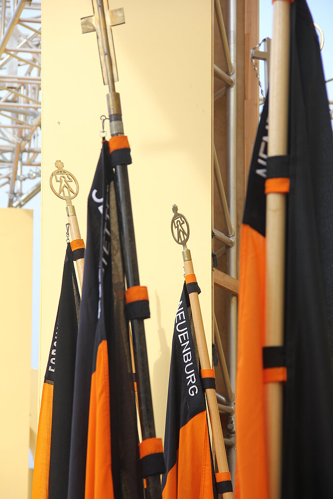 Nach dem Festgottesdienst werden die Banner bis zur Wiederabholung sicher aufbewahrt.