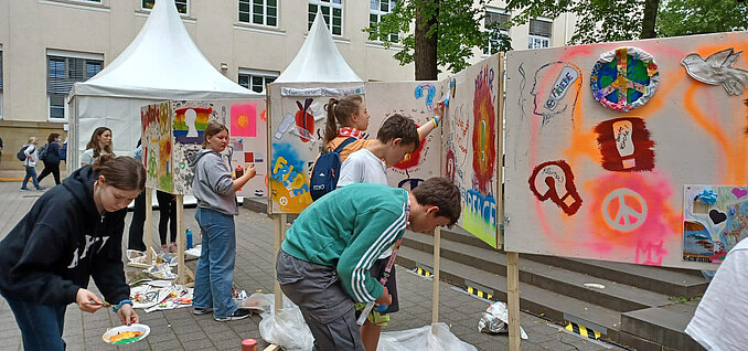 Eine große Fläche durfte unter den Vorgaben: „Wie stelle ich mir meine Zukunft vor oder was wünsche ich mir für die Zukunft und was sind meine Forderungen an die Politik und die Kirche“, gestaltet werden. Es entstand eine wunderschöne, bunte Wand mit vielen Forderungen, Wünschen und Hoffnungen. Ein großer Erfolg waren auch die von den Kolpingjugend angebotenen Exit Games, die rasend schnell ausgebucht waren.