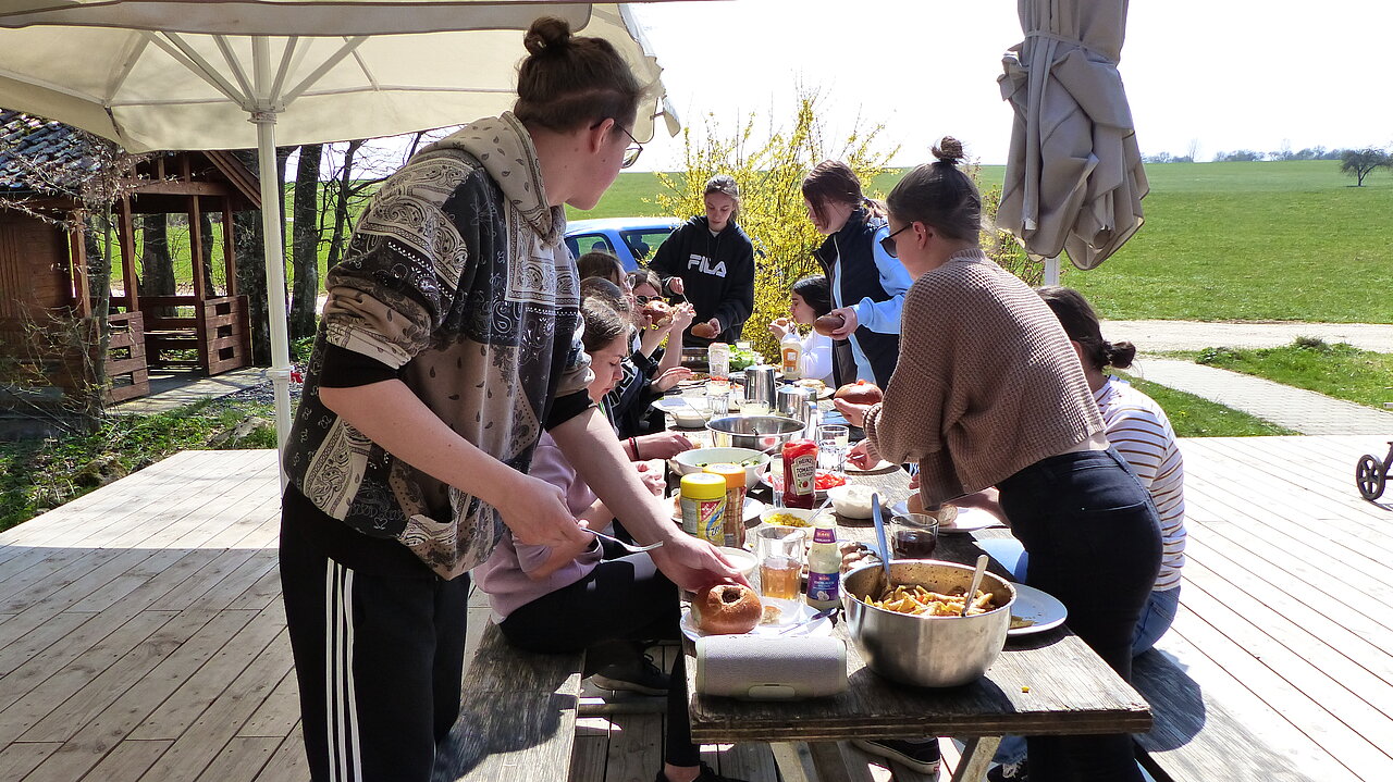 Da die E-Tage dieses Jahr in einem Selbstversorgerhaus stattfanden, wurden unter anderem Pfannkuchen, diverse Salate, Stockbrot und vieles mehr selbst zubereitet.